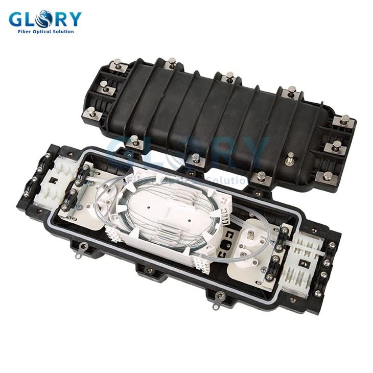 স্প্লাইস ঘেরের সর্বোচ্চ ক্ষমতা 96 টি ফাইবার, 2 ইনলেট এবং 2 আউটলেট কেবল পোর্ট। উপাদানটি উচ্চ সিলিং পারফরম্যান্স সহ পিপি+জিএফ।
